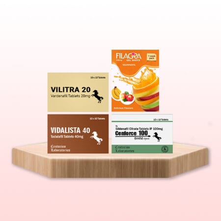 The ED Trial Pack allows you to test three different erectile dysfunction therapies to see which one works best for you. Each ED medication contains a unique active ingredient, allowing you to compare the outcomes. The ED-Generic Trial Pack contains Cenforce, Vidalista, and Vilitra, as well as their active components Sildenafil, Tadalafil, and Vardenafil.